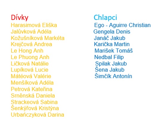 Ve třídě máme 15 děvčat a 9 chlapců. Sešli se zde žáci ZŠ Tyršova, Tiché a Kunčic.